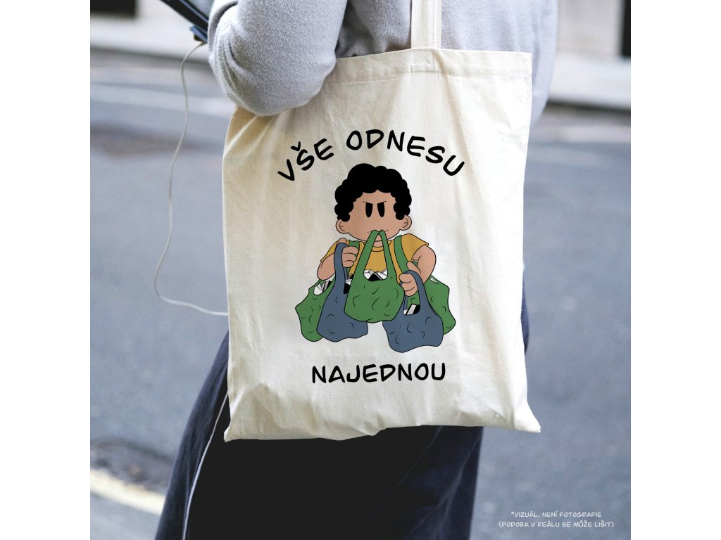 Bavlněná plátěnka s ilustrací Hanky Grehové s postavou z knihy Těžký život knihomolů.