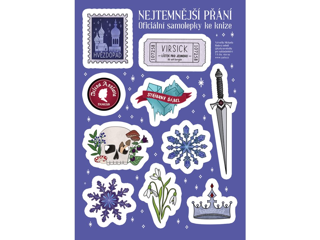 Arch samolepek ke knize Nejtemnější přání, které navrhla a ilustrovala Michaela Rodová.
